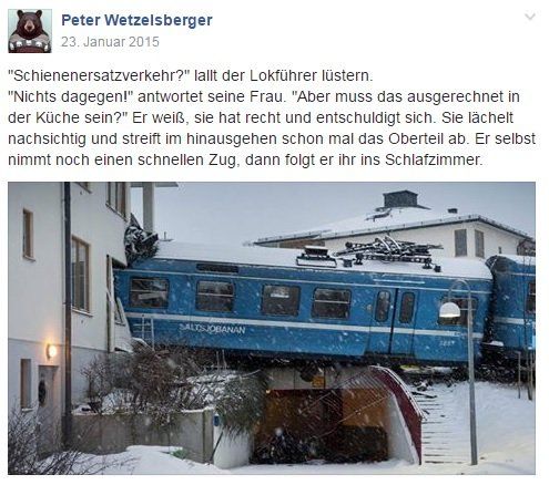 Einige der weniger ernst gemeinten Beiträge die in ihrem Witz denen von Max Goldt ähnelten - wenn auch nicht ganz mit derselben sprachlichen Brillanz für die der Autor so berühmt ist - sammelte ich, um sie in der Facebook-Gruppe AugeMundBunt zu veröffentlichen. Hier eine kleine Auswahl: